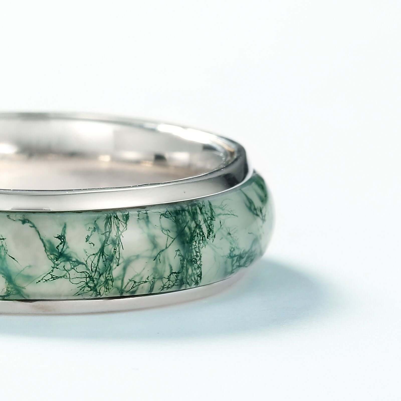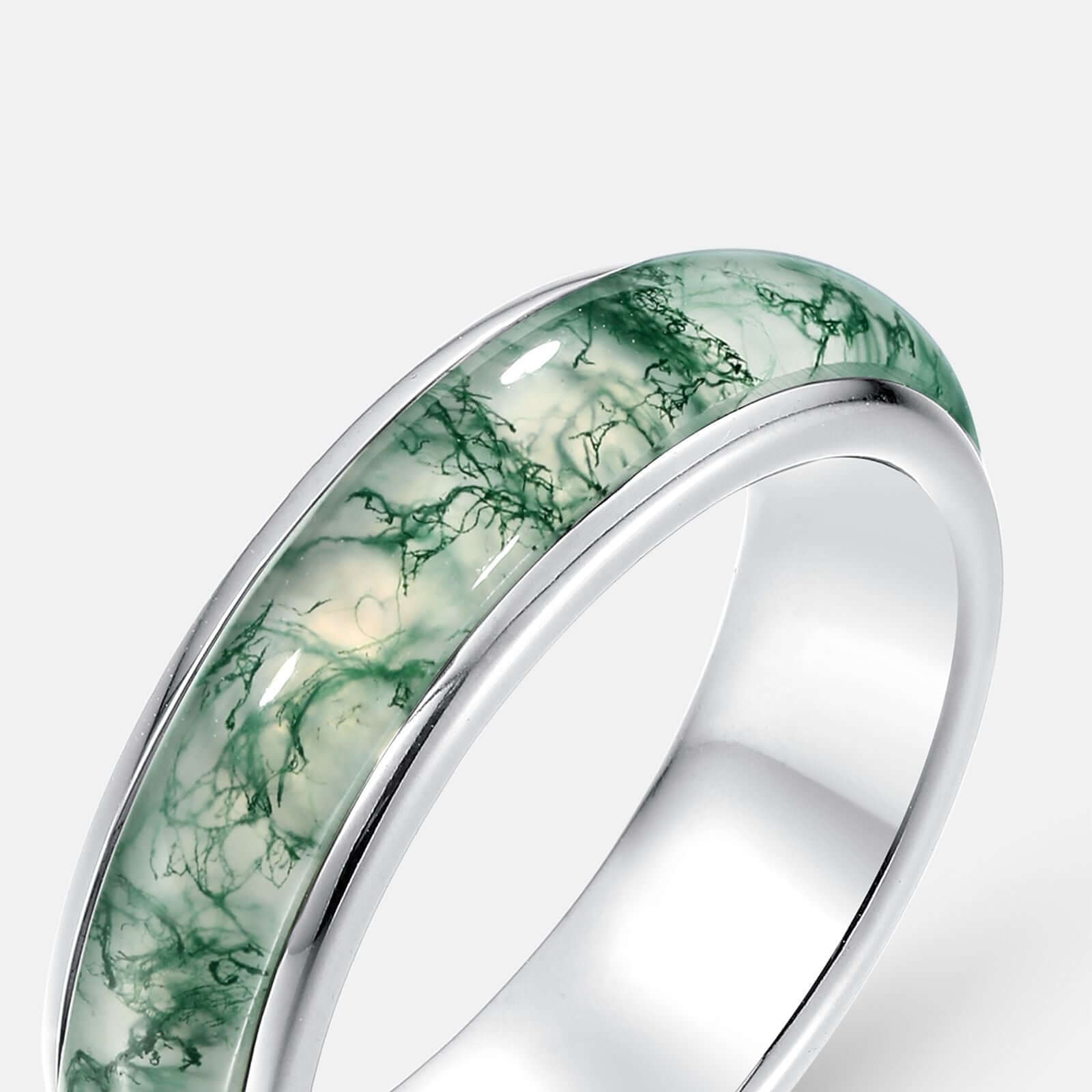 Zabalte si prst do zemských vibrací s naším plně obklopeným kruhem mohu agátu. This unique piece features a fully surrounded natural moss agate stone, bringing a touch of nature to your style. Nechte, aby tento hravý a podivný prsten byl začátečníkem konverzace pro váš další výlet.