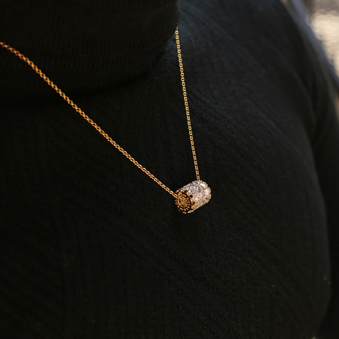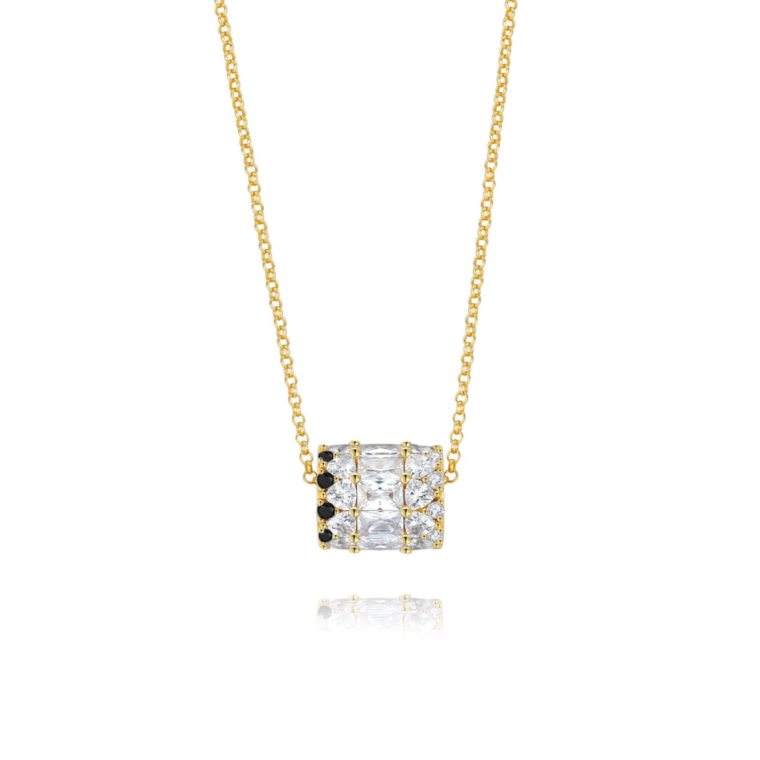 Un nuovo design moderno del classico ciondolo eternity. Non è facile dimenticare questa collana con corona pavimentata nera. Come chi lo indossa, anche la tua eredità non può essere facilmente dimenticata.