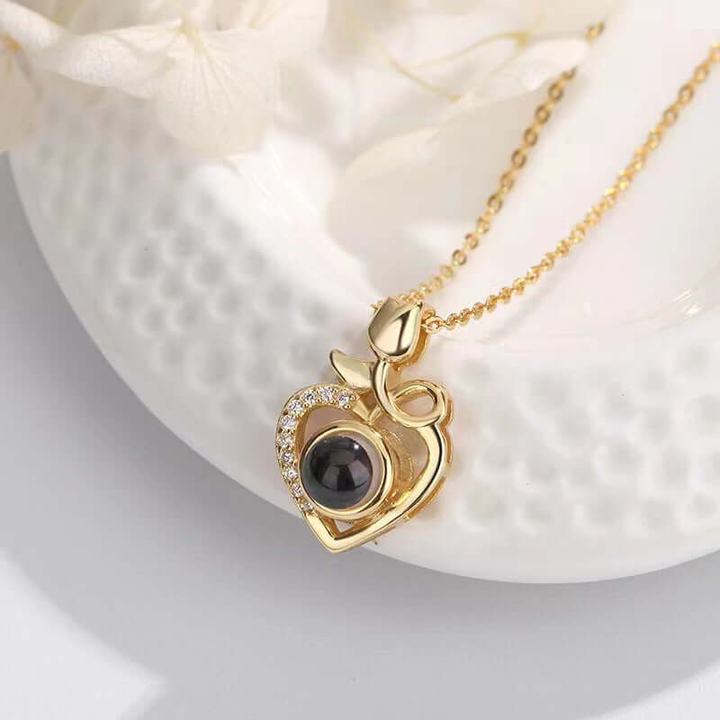 Zawadi ya waridi, harufu ya mkono ulioondoka. Washiriki upendo na uhusiano unaodumu milele. Paka picha ya kipekee ya mapenzi na mkufu huu wa makadirio na picha ndani. Hifadhi wakati maalum kwa wakati na vifaa hii ya aina moja!