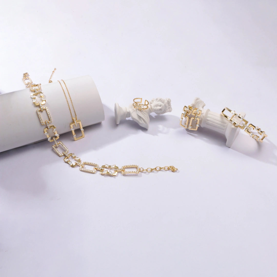 Immagina nella fresca brezza che soffia tra un mazzo di gelsomini ... Come sono adorabili l'odore e la dolce carezza della brezza sulla tua pelle e sui tuoi capelli! Questa collezione di gioielli è progettata per associare questa sensazione ai gioielli ogni volta che la usi. Il set è ispirato al fiore di gelsomino che cresce in primavera con un delizioso profumo che arriva con la brezza che scorre